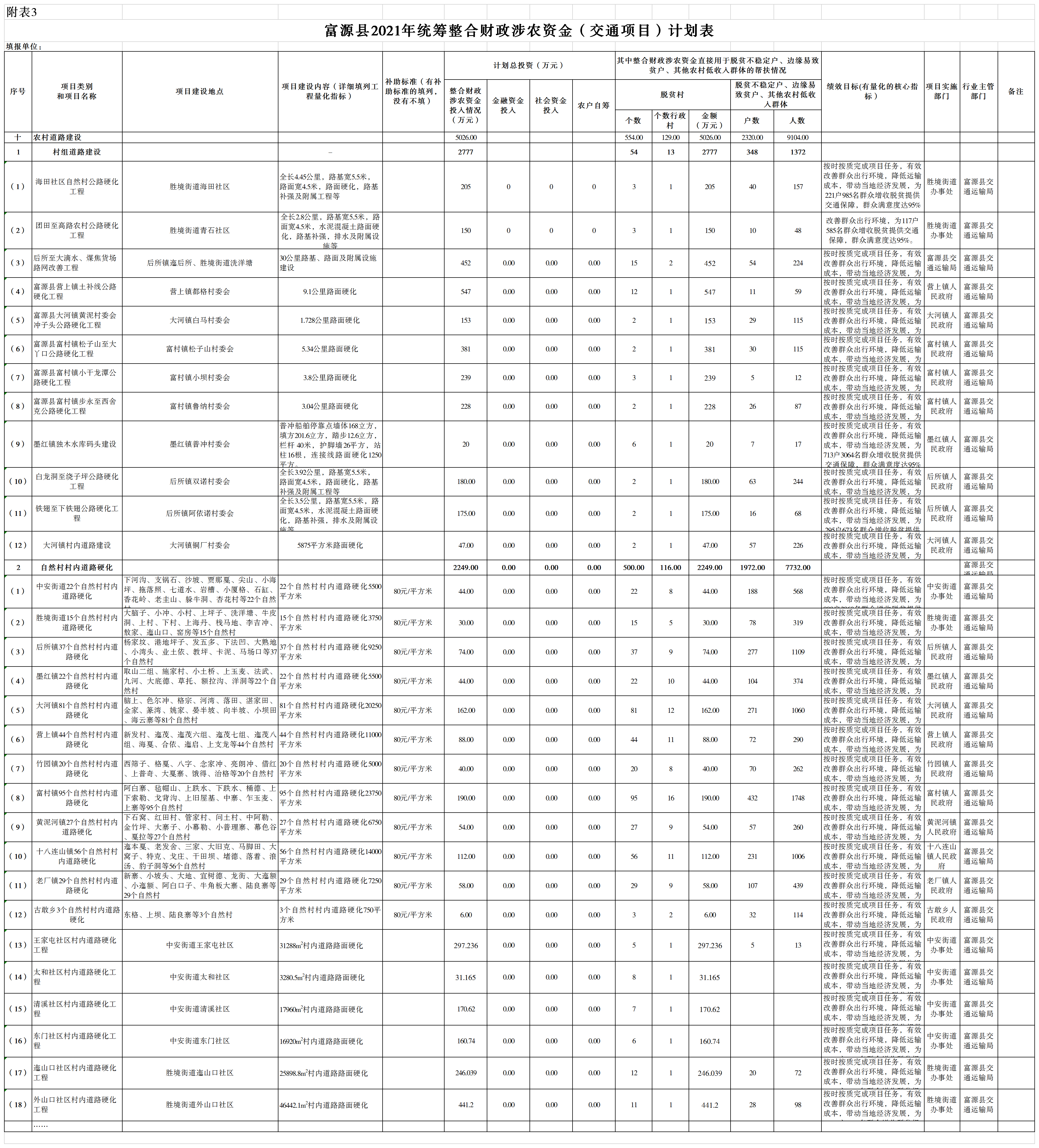 2、富源县人民政府关于2021年交通行业中期调整统筹整合 财政涉农资金项目建设实施方案的批复(富政复〔2021〕51号)